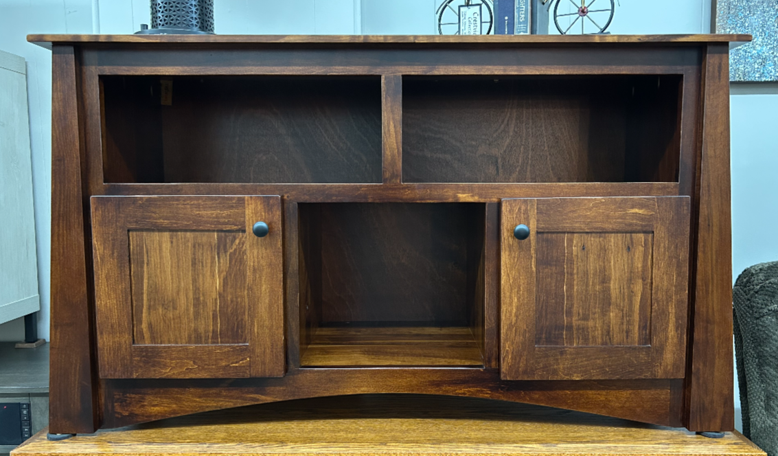 Upgrade your entertainment area with this elegant 52-inch TV stand, designed to combine functionality with style. Featuring three open pockets, it provides convenient space for your media components, while two spacious doors offer concealed storage for a clean, organized look. Crafted with quality wood and available in a variety of stain options, this TV stand can be customized to match your décor. Its versatile design makes it a perfect fit for any living room, ensuring your media setup is both stylish and practical.Read More