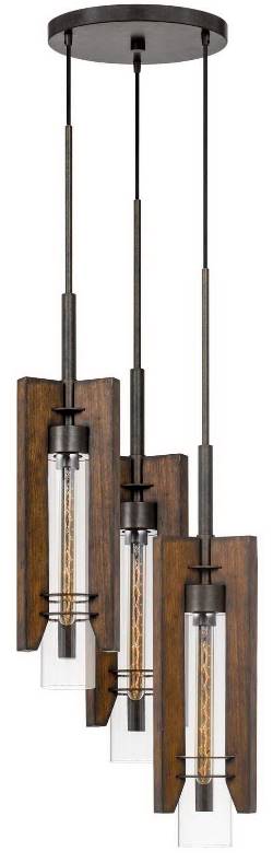 60W X 3 Almeria wood/glass 3 light pendant fixture (Edison bulb not included)