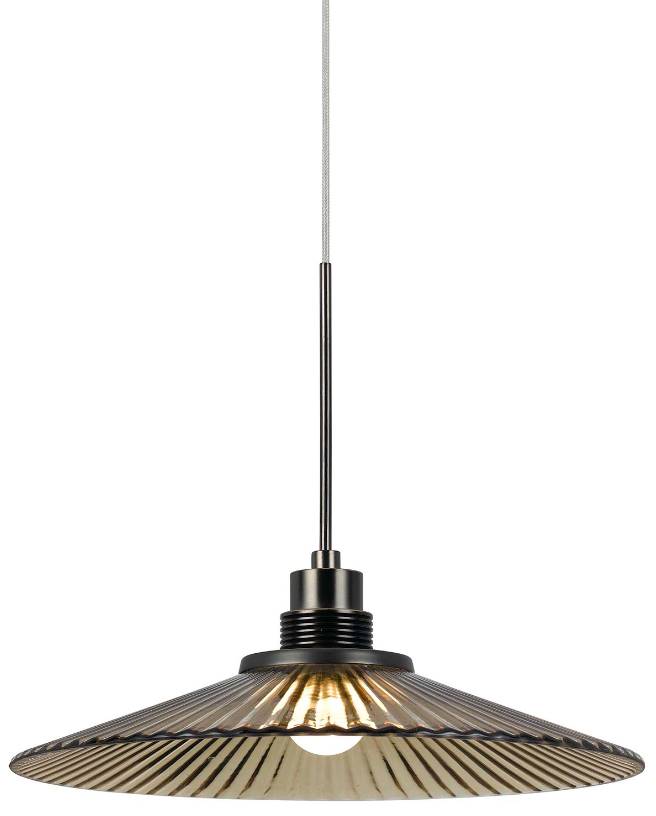7.5" tall glass and metal LED pendant with brushed steel cord