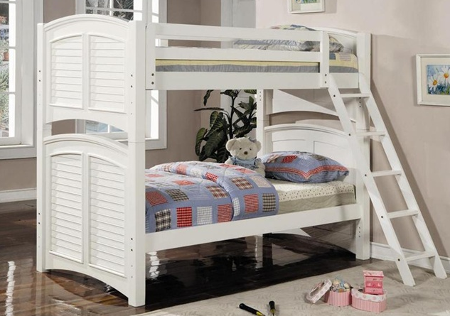 This ivory shutter twin/full bunk bed can be converted to a twin/twin bunk or two single twin beds.