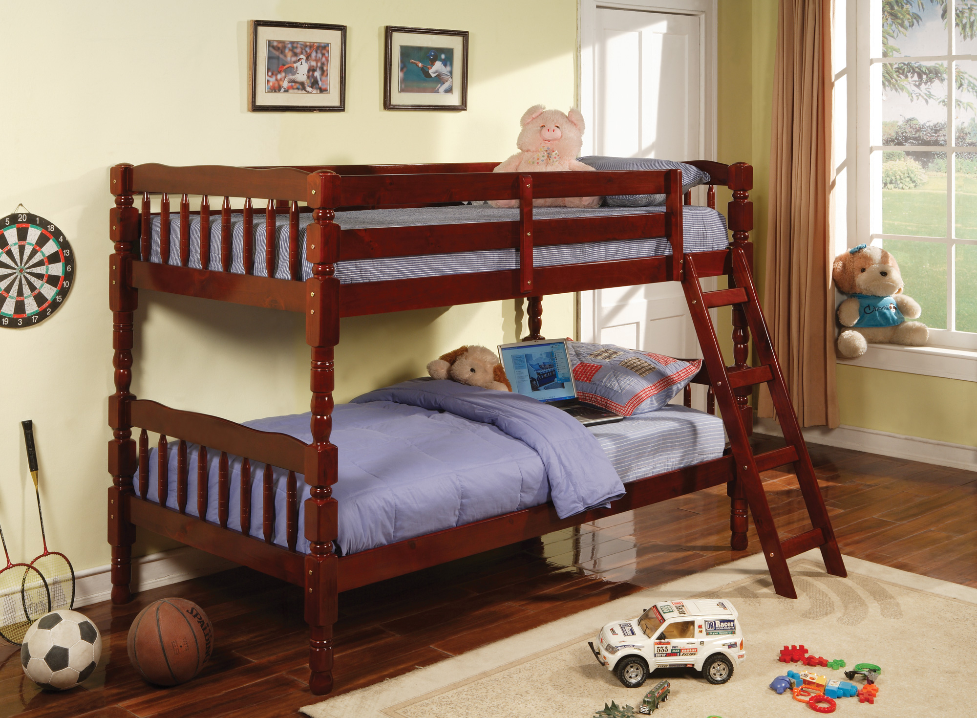 Solid pine bunk bed with ladder; Available in a rich cherry finish.