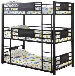 Good things come in threes, such as the Rogen collection from CoasterElevations. The space-saving, triple-decker design provides ample sleep space on a trendy, heavy-gauge metal frame in a versatile bronze-tone finish. Accommodate growth spurts with configurable options that let you optimize the room layout and give them a piece of their own independence.