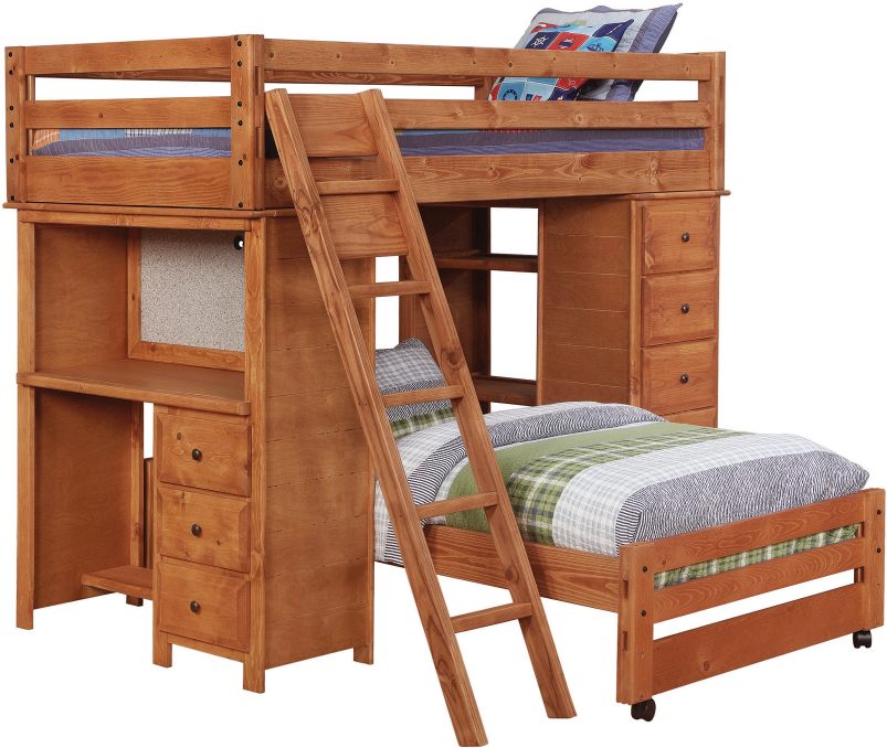 Tuck your little ones in for cozy dreams on the Wrangle Hill collection from CoasterElevations. The space-saving design uses a smaller footprint, allowing your kids to enjoy room for playtime during the day. Beautifully crafted with American ponderosa wood, this collection is a complete package of casually rustic style with quality you can trust.