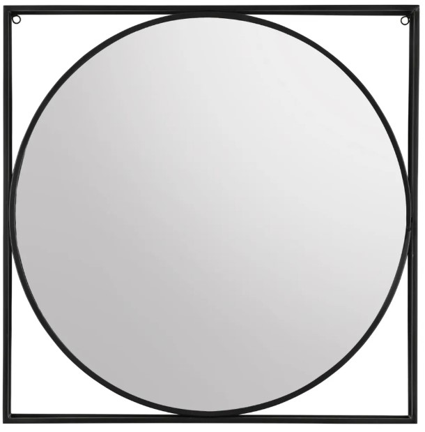 Bring all the modern style of geometry in all shapes with the Crestview Collection Black Metal Framed Wall Mirror. A square open black metal frame surrounds this piece in double-edged details, holding the wide round mirror within.Read More
