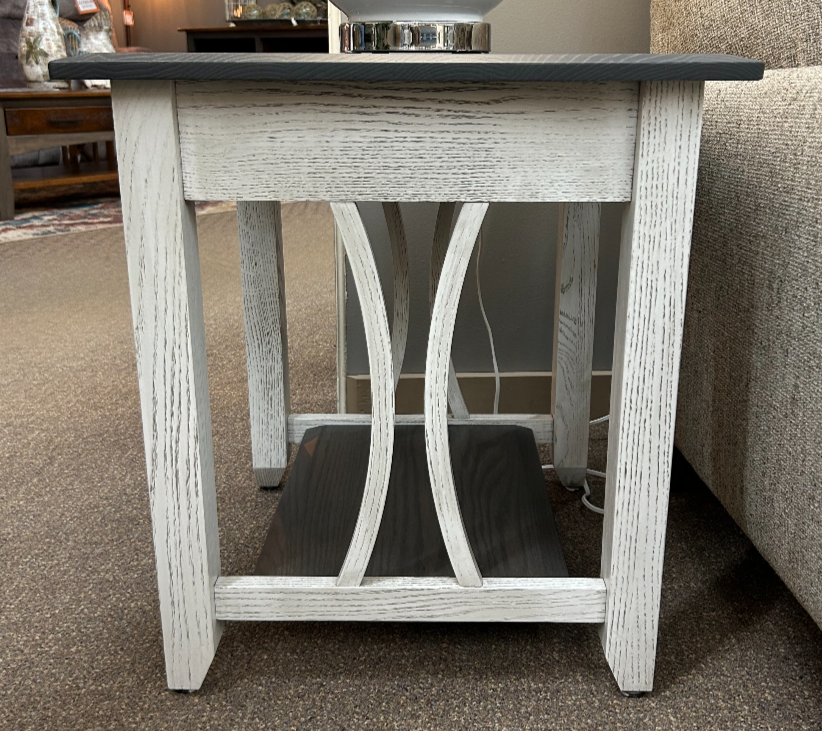 Elevate your living space with this eye-catching two-tone end table, designed to blend style and functionality. The table features a sleek, modern design enhanced by two 1-inch curved wood pieces in the center, adding a touch of elegance and visual interest. A practical bottom shelf offers additional space for books, décor, or storage. Customize the look with a variety of wood types and stain options to perfectly complement your interior. This end table combines chic design with versatile utility, making it a standout addition to any room.Read More
