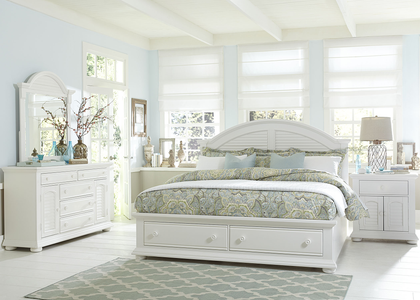 Liberty Summer House l Bedroom King Storage Bed, Dresser, Mirror and Night Stand Collection with full extension metal side drawer glides and bottom case dust proofingRead More