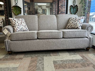Pull over back sofa with rolled arms and upgraded soft cushions.Read More